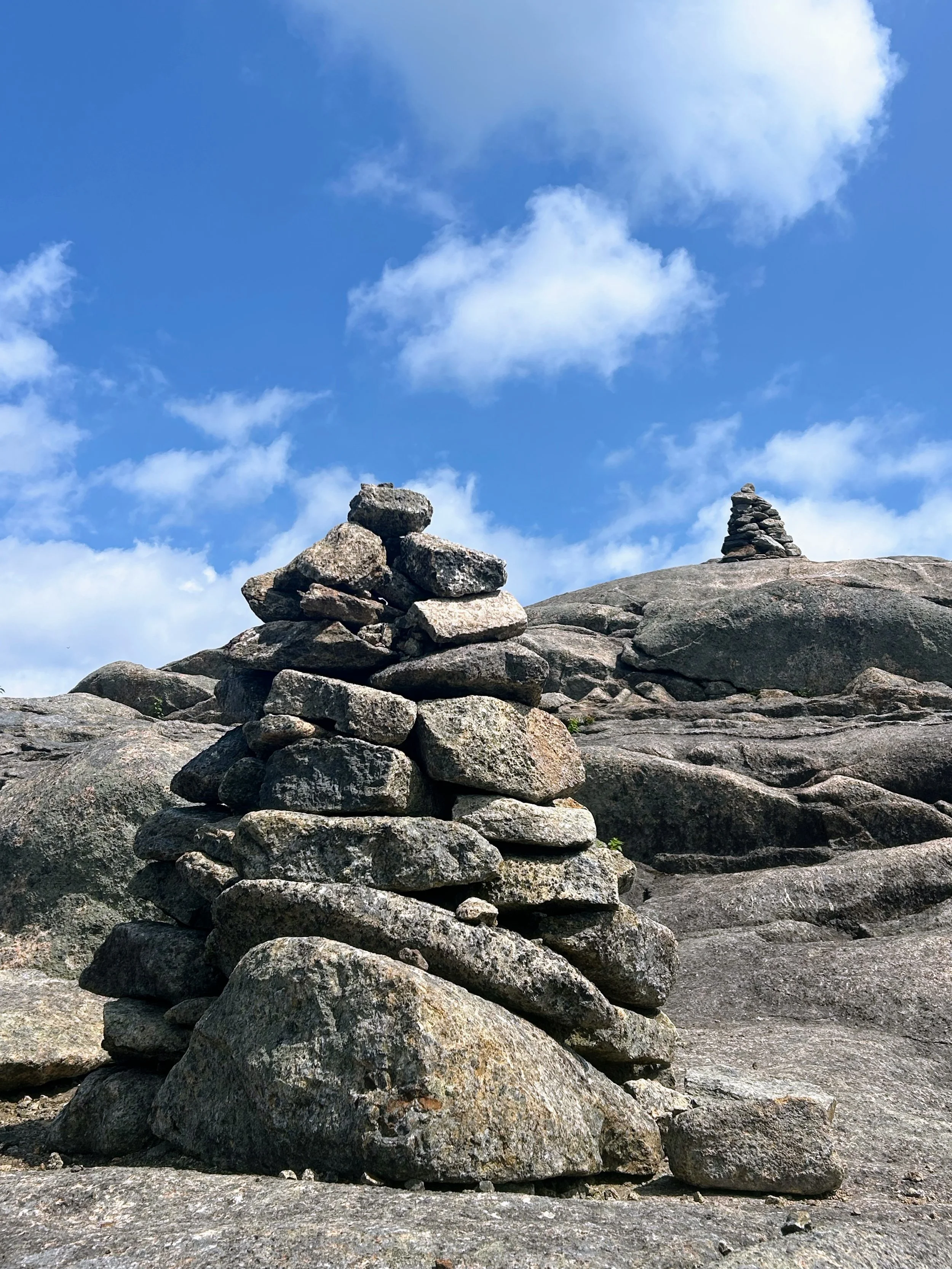 Cairns are essential trail markers in the Adirondack High Peaks, guiding hikers through exposed alpine zones where trails can be hard to follow.